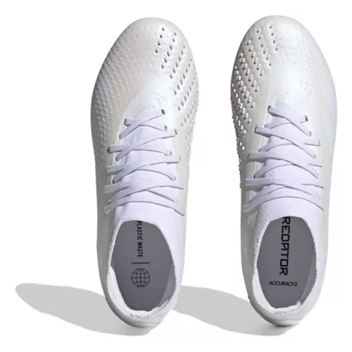 These Adult adidas Predator Accuracy 2 FG Molded Soccer Cleats are perfect for any player who needs the perfect combination of comfort and control. Crafted with a lace closure, a mid-cut knit collar, and a molded sockliner for improved fit and comfort, these soccer cleats are designed for optimal performance. The upper is made from HybridTouch synthetic leather and contains at least 50% recycled materials, making it both durable and environmentally friendly. The outsole is designed for firm ground surfaces, making these cleats a great choice for any player who wants to take their game to the next level.