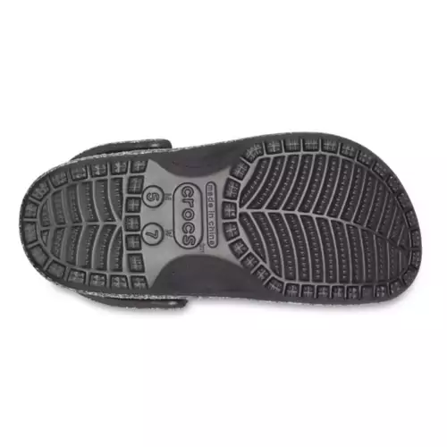 Go everywhere in the Adult Crocs Classic Glitter Clogs. These Adult Crocs Glitter Clogs are great for men and women so everyone in your family can find a pair they love, or you can all wear matching pairs! The possibilities are endless with a variety of colors and patterns and the optional Jibbetz charms. You’ll enjoy all-day comfort with lightweight Crocs’ Croslite foam that cushions every step. These classic Crocs Pattern Clogs are water-friendly, quick-drying, and buoyant so you can wear them from land to water and easily wipe them clean when needed. Stay comfortable all day and show off your personal style in the Adult Crocs Classic Glitter Clogs.