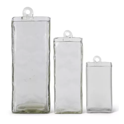 K&K Interiors Hand-Blown Square Clear Glass Hanging Vases
