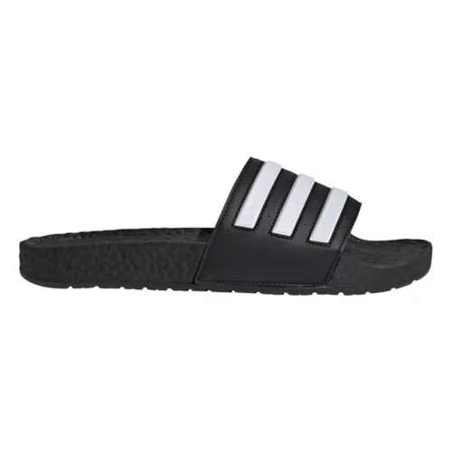 The Men’s Adilette adidas Boost Slides will keep your feet feeling good all day long. These adidas Boost slides feature a full-length energy-returning Boost midsole for maximum comfort. With the classic adidas 3-stripe design, these Boost slides offer a sporty finish. For comfort and style, with or without socks, wear the Men’s Adilette adidas Boost Slides.