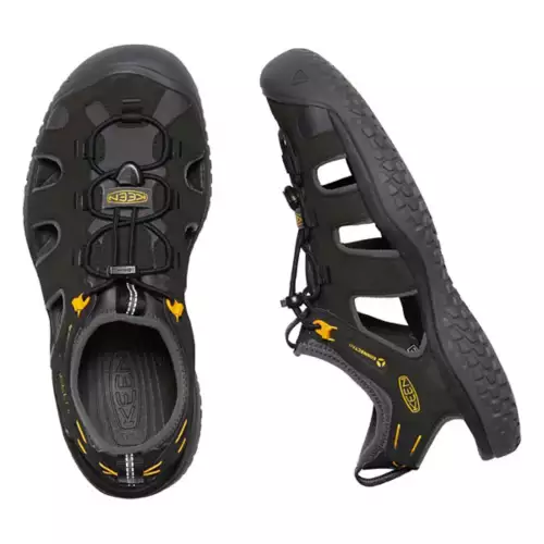 The Men’s KEEN Solr Sandals are incredibly durable, sustainable, and comfortable. Constructed from water and abrasion-resistant materials, these men’s sandals are durable enough to withstand any adventure. For maximum traction on wet surfaces, these sandals feature an Aquagrip outsole, while still keeping the sandal lightweight. With a bungee cord closure, these men’s sandals will stay secure on your feet, while the arch support and cushioning provide comfort all day long. Be ready for your next adventure with the Men’s KEEN Solr Sandals.