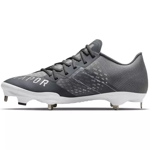 Make the game-winning run in the men’s Nike React Vapor Ultrafly Elite 4 metal baseball cleats. The Nike React Vapor Ultrafly Elite 4 baseball cleats are made with a lighter design to keep you quick on your feet from first base to home. Enjoy an asymmetrical lacing pattern that keeps your feet securely locked down, as well as a hybrid cleat pattern with two TPU studs to give you superior traction on the infield and outfield alike. With updated foam cushioning and breathable mesh construction, the Nike men’s React Vapor Ultrafly Elite 4 baseball cleats will also keep your feet comfortable throughout all nine innings. Play ball in the men’s Nike React Vapor Ultrafly Elite 4 metal baseball cleats.