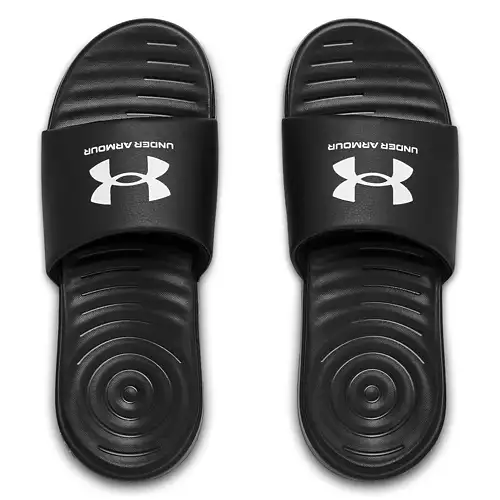 The Men’s Under Armour Ansa Fixed Slides are perfect for athletes looking for a comfortable locker room slide. Featuring an EVA outsole with grooves, the Under Armour Ansa Slides provide traction and durablity on slick surfaces, while the drop-in EVA footbed offers cushioning with each step. These Under Armour Ansa Slides have a fixed upper strap for easy on and off. Plus, the strap features foam underneath for additional comfort.