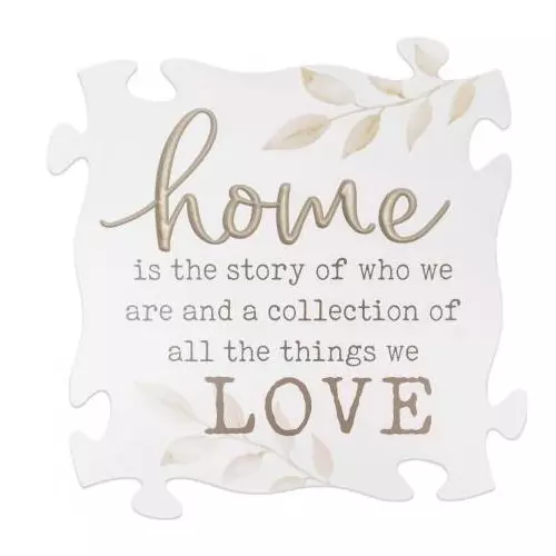 This creative and fun wall décor replicates the look and feel of an actual puzzle. This piece features an inspirational sentiment, carved lettering, and floral embellishments. Includes a pocket mount for easy hanging and is shaped to connect with other puzzle pieces.