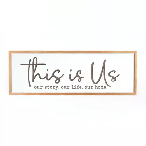 This framed decor delivers a traditional farmhouse look by pairing a natural, stained pine frame with inspirational typography. From the natural textures in the wood to the placement of the words, this piece is artfully detailed.