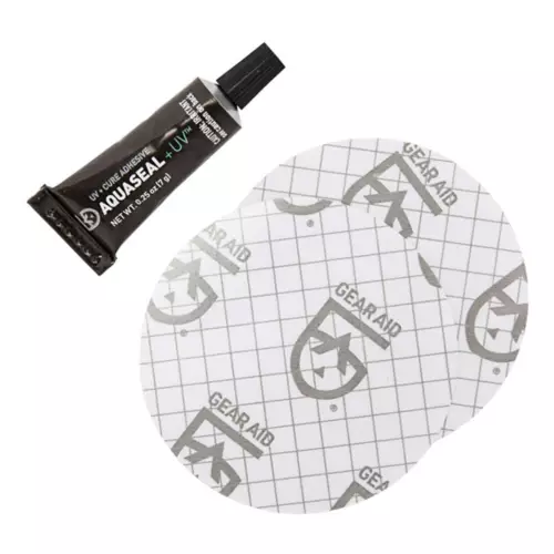 Quick-curing AQUASEAL® UV and Tenacious Tape patches for instant on-the-water repairs to waders and raingear.