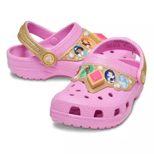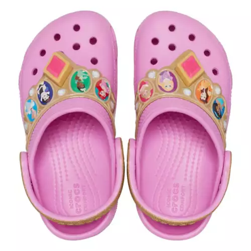 Your little princess can now join the magical world of Tiana, Jasmine, Cinderella, and more with these Disney Princess Lights clogs featuring a light-up diamond at the center! Toddlers’ clogs offer amazing comfort and support, thanks to the light, durable Croslite™ material and molded design and are made with breathable ventilation holes so kids can add even more Jibbitz™ charms. ©Disney
