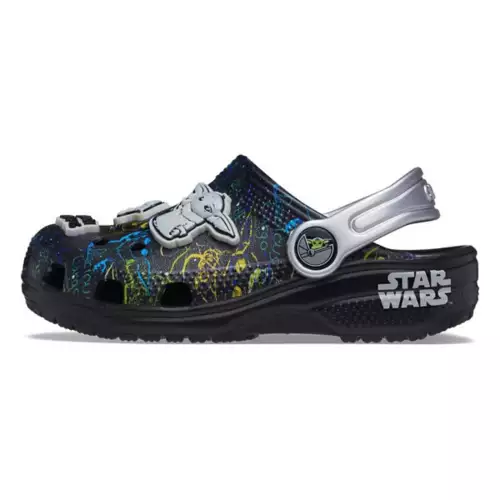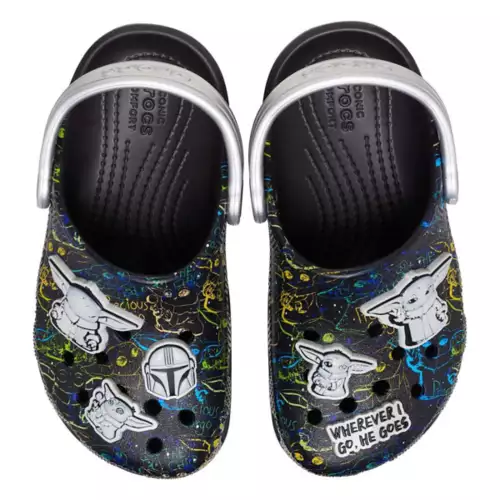 Easy on, easy off! Just like the adult Classic, the kids’ version offers amazing comfort and support, thanks to the light, durable Croslite material and molded design. This version features graffiti style Star Wars graphics and fixed embellishments featuring “The Child”. This is the way.